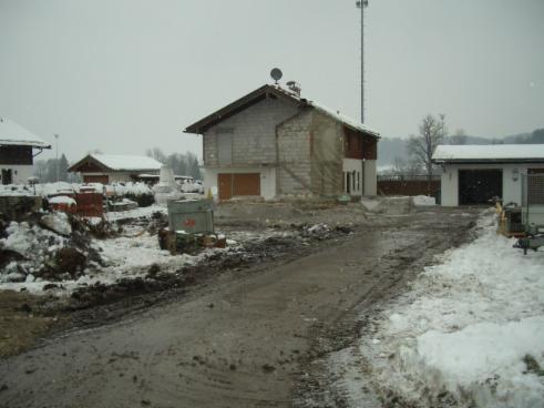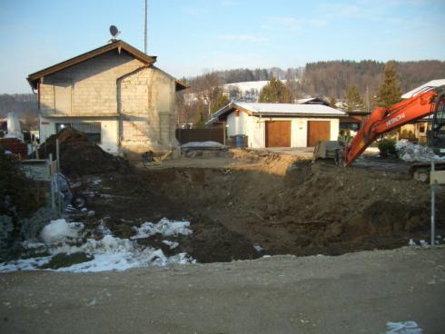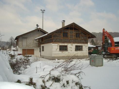 09.03.2010 Abriss Wärmedämmung an altem Gebäude 10.03.2010 Abriss Dach- und Erdgeschoss 11.03.2010 Abriss Keller 12.03.2010 Fertigstellung des Schnurgerüstes |