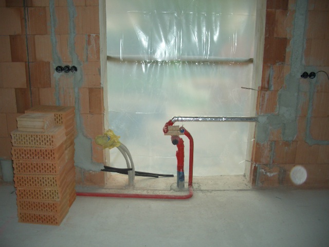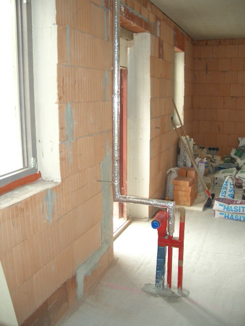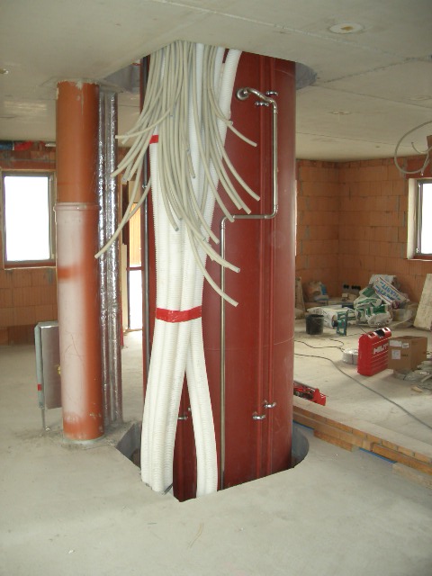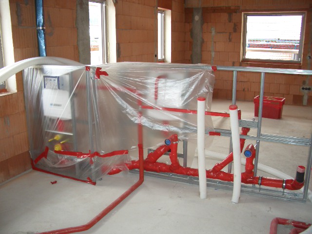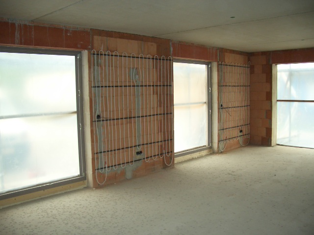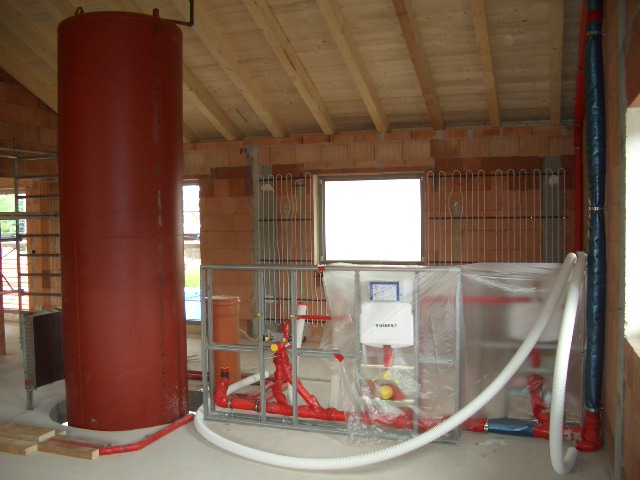 Impressionen aus dem Innenausbau Wandheizung im Wohnzimmer Solarspeicher Dachgeschoss Solarspeicher Erdgeschoss Solarspeicher im Kellergeschoss Installation Bad WC - Raum Küchenanschluss |
